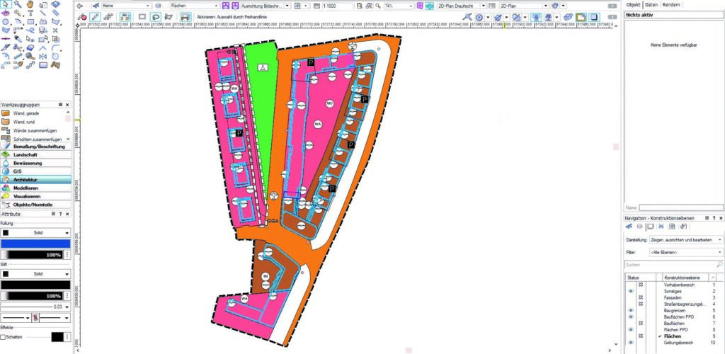 Evers & Partner Stadtplaner nutzen die XPlanung im Rahmen der Bauleitplanung, also für die Erstellung von Bebauungsplänen und Flächennutzungsplänen, und setzen dabei auf Vectorworks: „Wir haben schon vor dem Beschluss zur verbindlichen Anwendung des Standards XPlanung mit dem Programm Vectorworks gearbeitet und nutzen es daher auch für die Erstellung unserer XPläne.“