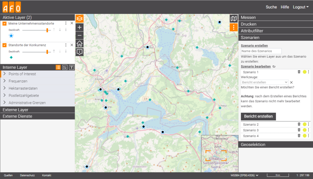 Und dennoch: auch der stationäre Einzelhandel kann immer noch erfolgreich sein – wenn die richtigen Faktoren beachtet werden. „Insbesondere die richtige Wahl des Unternehmensstandortes ist hier zu nennen“, weiß Peter Hartmann, Geschäftsführer der afo solutions ag aus dem schweizerischen Hünenberg. Das Unternehmen besteht bereits seit über 15 Jahren am Markt und ist Spezialist für Geodaten und räumliche Analysen. Dabei verfügt afo solutions über eine eigens entwickelte WebGIS-Lösung sowie eine eigene Geodatabase mit umfassenden Marktdaten. „Wir wollen unseren Kunden die besten Entscheidungen hinsichtlich eines möglichen Standortes ermöglichen. Dafür beziehen wir verschiedene Informationen in unsere Analysen ein, sodass wir das Potenzial eines potenziellen Standorts genau abschätzen können.“