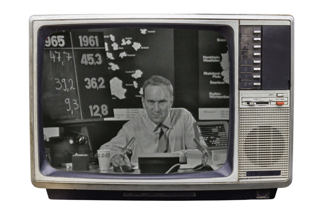Die „Computernacht“ im WDR zur Bundestagswahl 1965. Erstmals liefert ein Computer die Wahlprognose noch am Wahlabend – mit Hilfe von „Geoanalyse“. Foto: saravuth / shutterstock.com; WDR