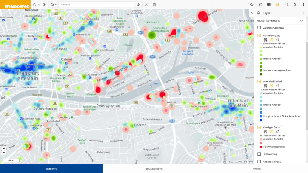 Darüber hinaus können Städte, Gemeinden und Regionen den Standortatlas nutzen, um Fragestellungen der Stadt- und Raumplanung zu beantworten – zum Beispiel um herauszufinden, welche Viertel und Quartiere welche Angebote benötigen. „Stadtentwickler, Regionalplaner, Wirtschaftsförderer und Gutachter können sich mit dem WIGeo Standortatlas einen Überblick über zentrale Versorgungsbereiche, die bestehende Angebotsvielfalt in Stadtteilzentren, die Qualität der Nahversorgung oder die Risiken bei der Ansiedlung großflächiger Handelsbetriebe außerhalb gewachsener Strukturen verschaffen. Das sorgt für Transparenz und Planungssicherheit“, betont Urner.