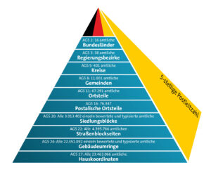 Schematische Darstellung des Postalisch-Amtlichen Gliederungssystems (PAGS) von infas360. Grundlage ist der Amtliche Gemeindeschlüssel (AGS). Grafik: infas 360 GmbH