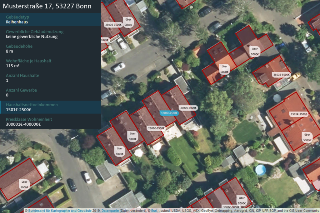 Das älteste und bekannteste Anwendungsbeispiel für Geocoding ist die Zuweisung einer Geokoordinate zu einer Adresse (und umgekehrt). So können Adressen beispielsweise auch positionsbasierte Kontextinformationen zugewiesen werden. Grafik: infas 360 GmbH