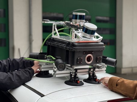 Eine am Fraunhofer IPM entwickelte mobile Sensorbox erfasst 3D-Geodaten von Bussen, Taxis oder Müllfahrzeugen aus.