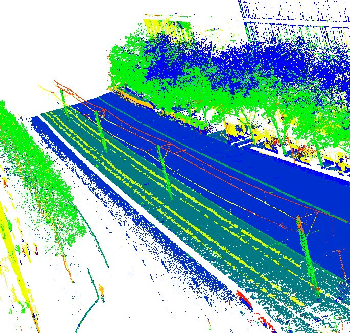 In einem automatisierten Prozess erkennen und klassifizieren spezifisch trainierte KI-basierte Algorithmen typische Objekte des urbanen Umfelds in den Kameradaten. Die Daten sind so genau, dass auch schmale Objekte wie z. B. Zäune, Schilder, Mülleimer oder Bäume erkannt werden. Durch Fusion mit den 3D-Daten der Laserscanner entsteht eine 3D-Punktwolke.