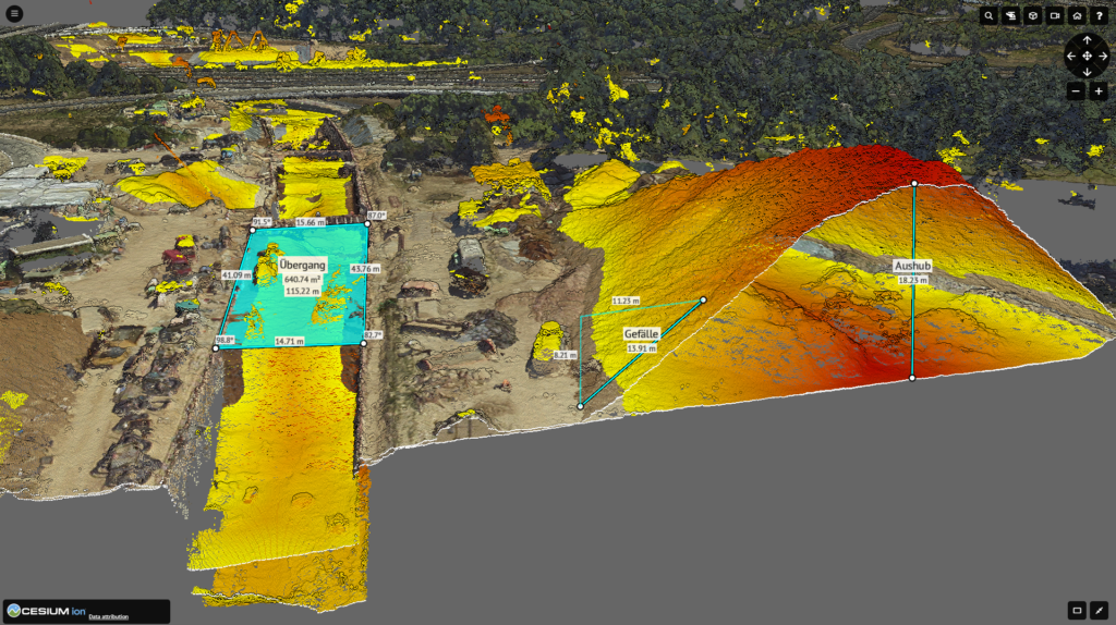 Konkret geht es darum, dass innerhalb eines automatischen Auswerteverfahrens erkannt wird, wo sich an der Baustelle etwas verändert hat und wie sich dies qualitativ bewerten lässt. Ein wichtiger Anwendungsfall ist die Mengenermittlung bei Erdarbeiten, die die Grundlage für Abrechnungen darstellt. „Die Plattform kann genau erkennen, wieviel Erde wo im Zeitraum zwischen den Aufnahmen bewegt worden ist“, beschreibt Geschäftsführer Rico Richter. Allein anhand solch konkreter Anwendungen würden Nutzer sofort den Mehrwert der Punktwolkenplattform erkennen. „Häufig steht ja bei vielen zunächst die Frage im Raum, wie sie die neuen Datenmengen überhaupt produktiv nutzen können“, so Richter.