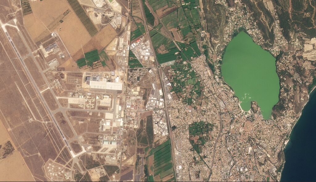 Aufnahmen aus dem südfranzösischen Miramas, inklusive der Motorsport-Rennstrecke, stammen von der PlanetScope-Konstellation und besitzen eine Auflösung im Bereich weniger Meter. Mithilfe dieser Aufnahmen verifizierten die Forschenden unter anderem die KI-basierten Analysen der Landnutzung. Quelle: ESA