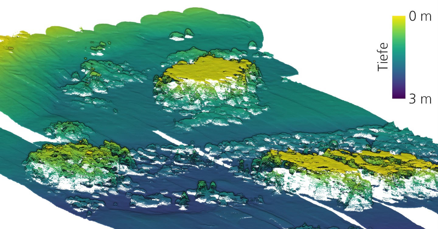 Die Topographie von Gewässern lässt sich aus der Luft mithilfe von Laserscannern messen. Gegenüber dem Echolot oder anderen optischen Verfahren hat die Laserbathymetrie einige Vorteile.